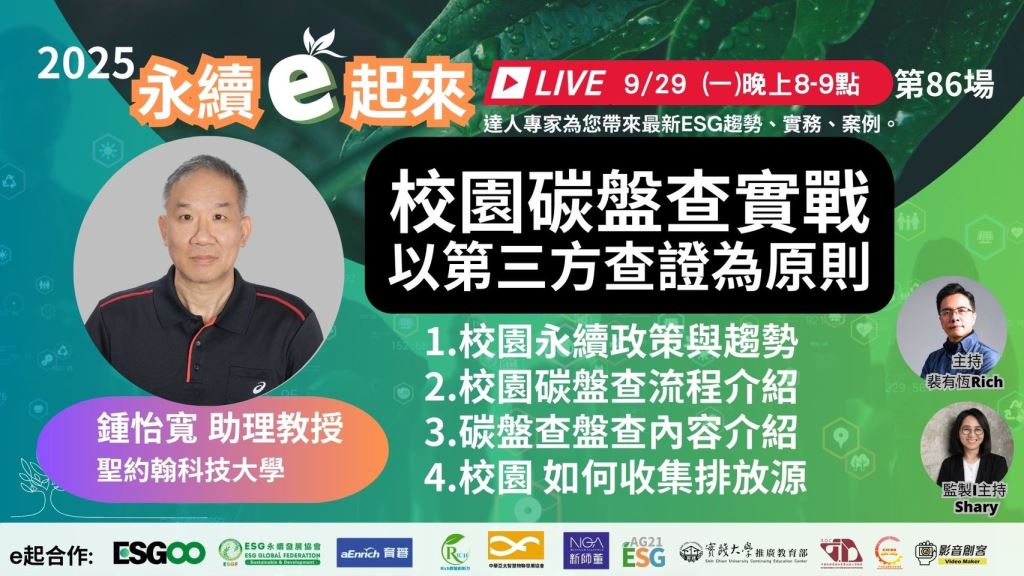 2025.09.29【永續e起來直播86】| 校園碳盤查實戰:以第三方查證為原則